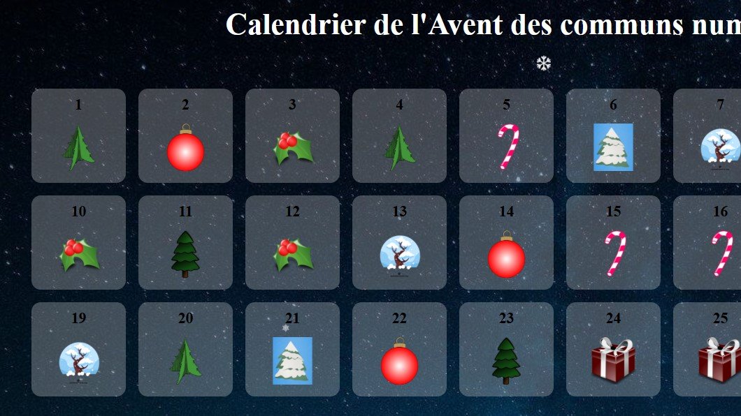 Accueil >S’informer >Outils Mathématiques > Le calendrier de l’avant des communs numériques 2025